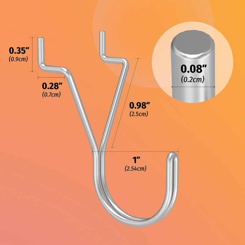 [STABLE WOBBLE-FREE FIT] Designed to stay put. Engineered specifically for standard 1/8? and 3/16? pegboards with 1-inch spacing, these hooks lock firmly into the holes. You can grab your tools or products quickly without the hook falling out of the board.