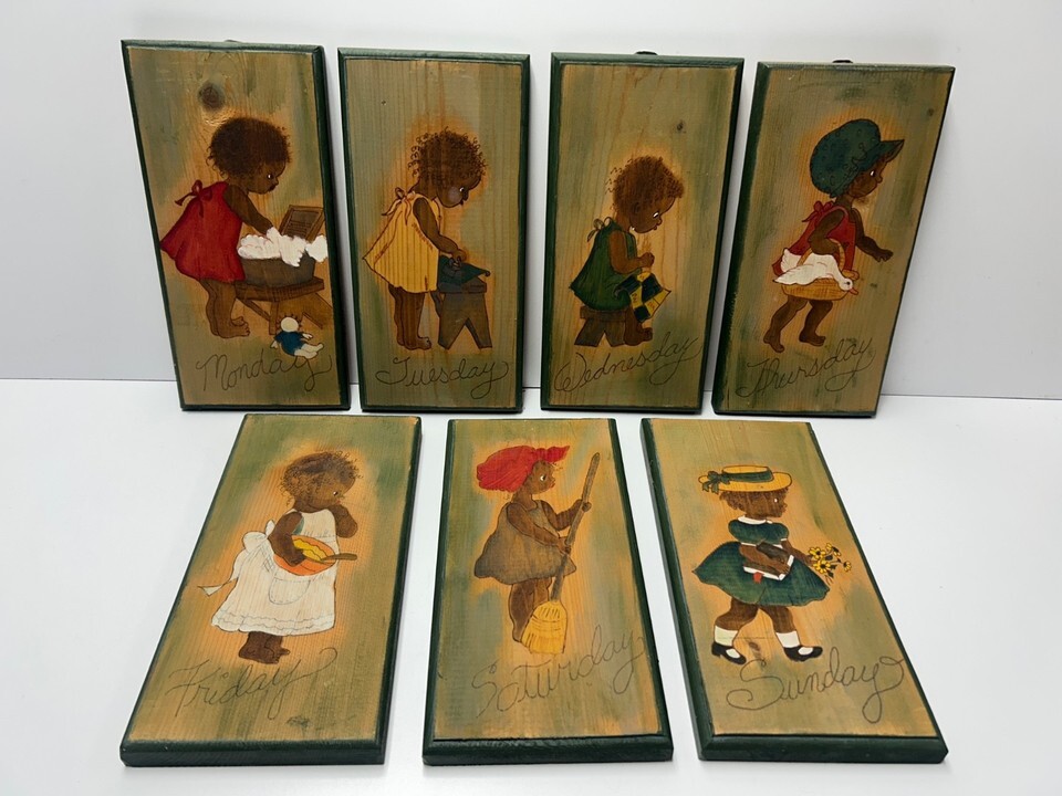 Vintage Folk Art Children Days of The Week Wooden Wall Decor