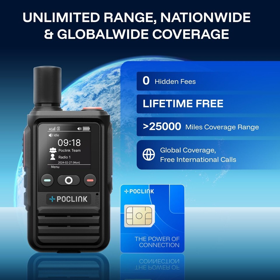 Lifetime Free Global Walkie Talkies Long Range, POC-1 Lite, 4G LTE Unlimited