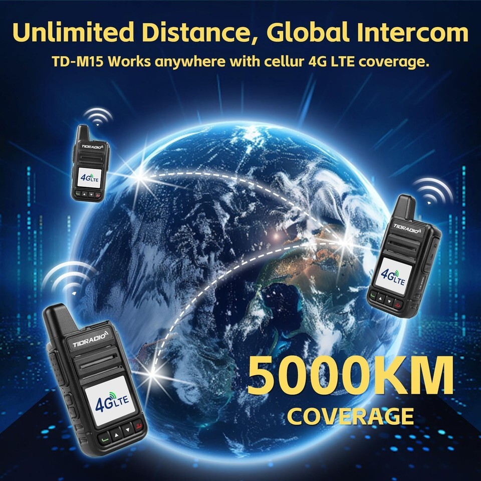 TIDRADIO TD-M15 Rapid Walkie Talkies 5000 Mile Unlimited Range 4G LTE