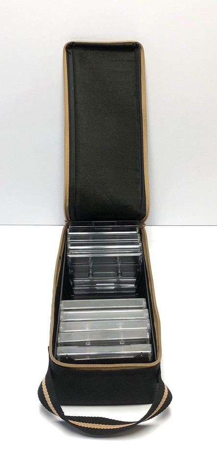 15 Cassette Carrying Storage Case Black Nylon Handle Zipper with 10 Empty Cases