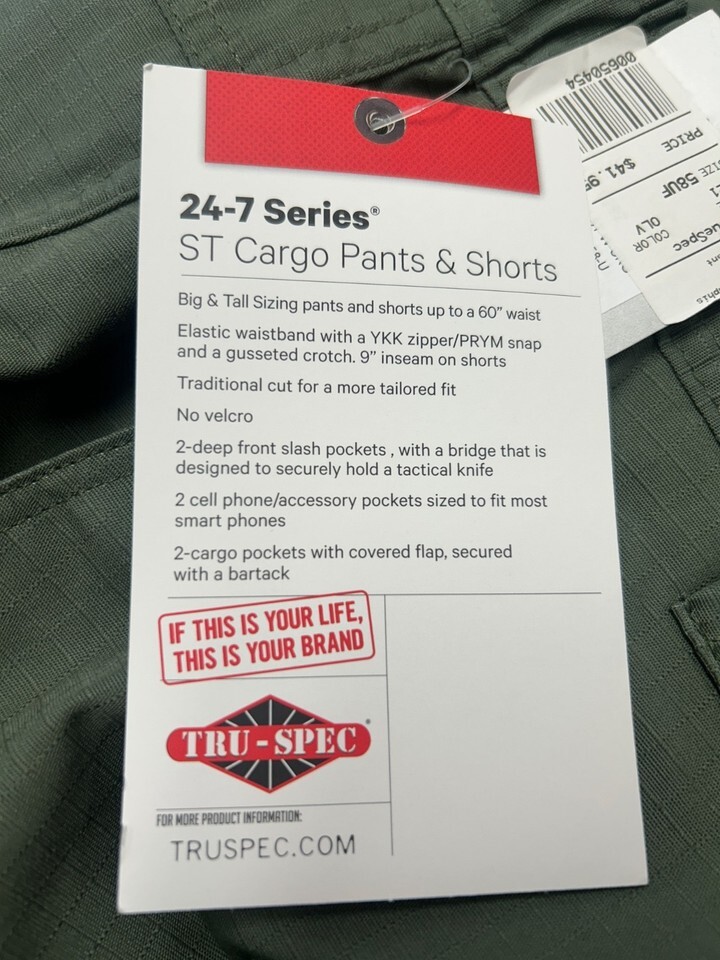 TRU-SPEC 24-7 Series Tactical Pants Mens Olive Drab Straight Leg Cargo 58x36-UF