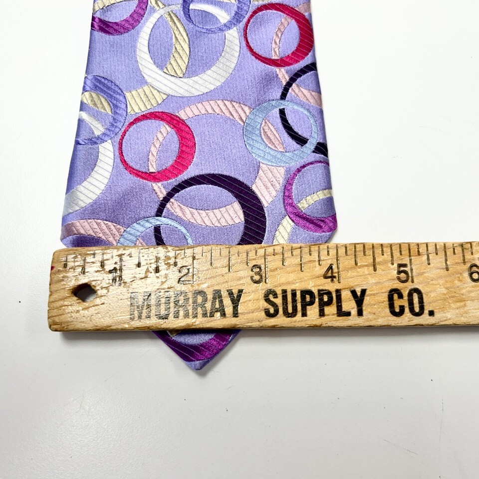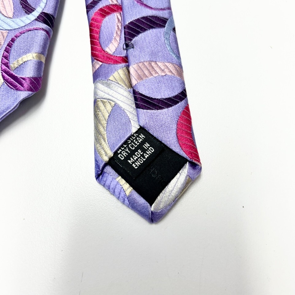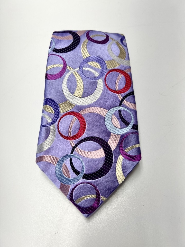 Duchamp London 100% Silk Tie Purple with Multi-color Circles 58" England