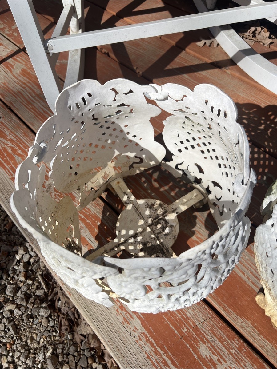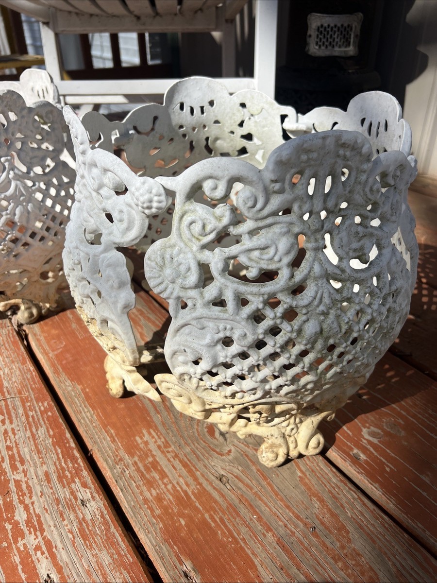Vintage Ornate Cast Aluminum White Planters Victorian Style 12”