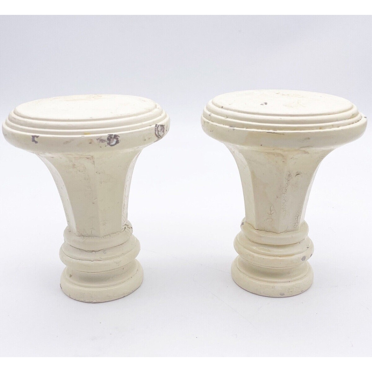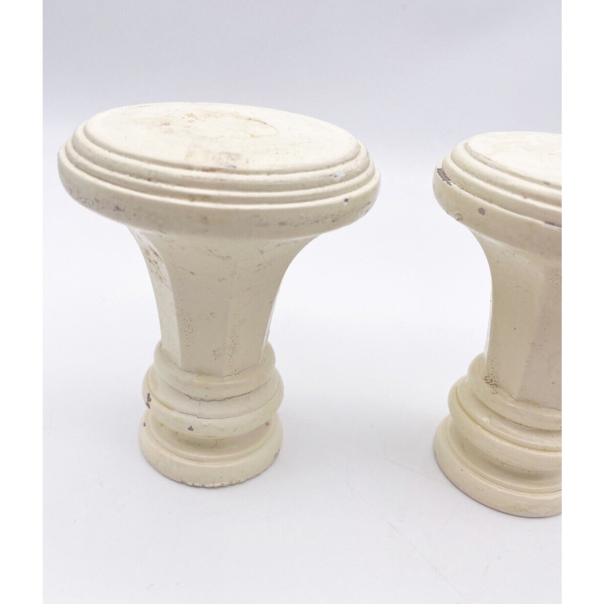 Vintage Set 2 Curtain Rod Finials 3.25" x 4" Hardware Knobs Salvage Cream White