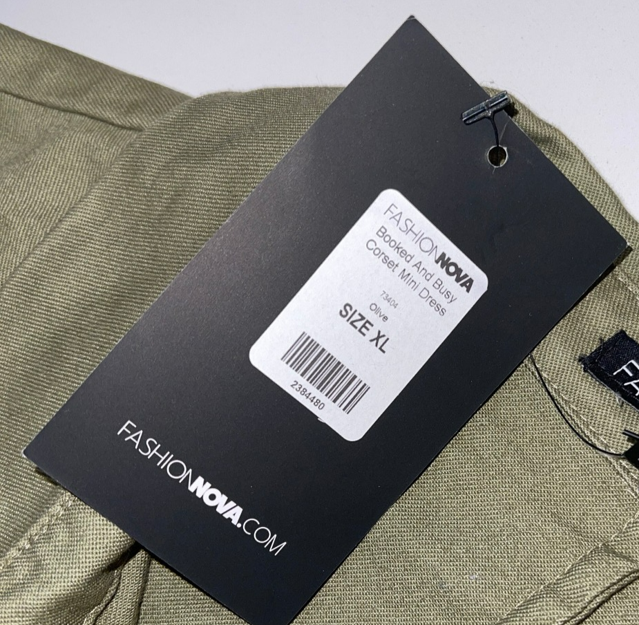 DESIGNER FASHION NOVA OD GREEN CORSET 100% COTTON MINI DRESS WOMENS SIZE X-LARGE