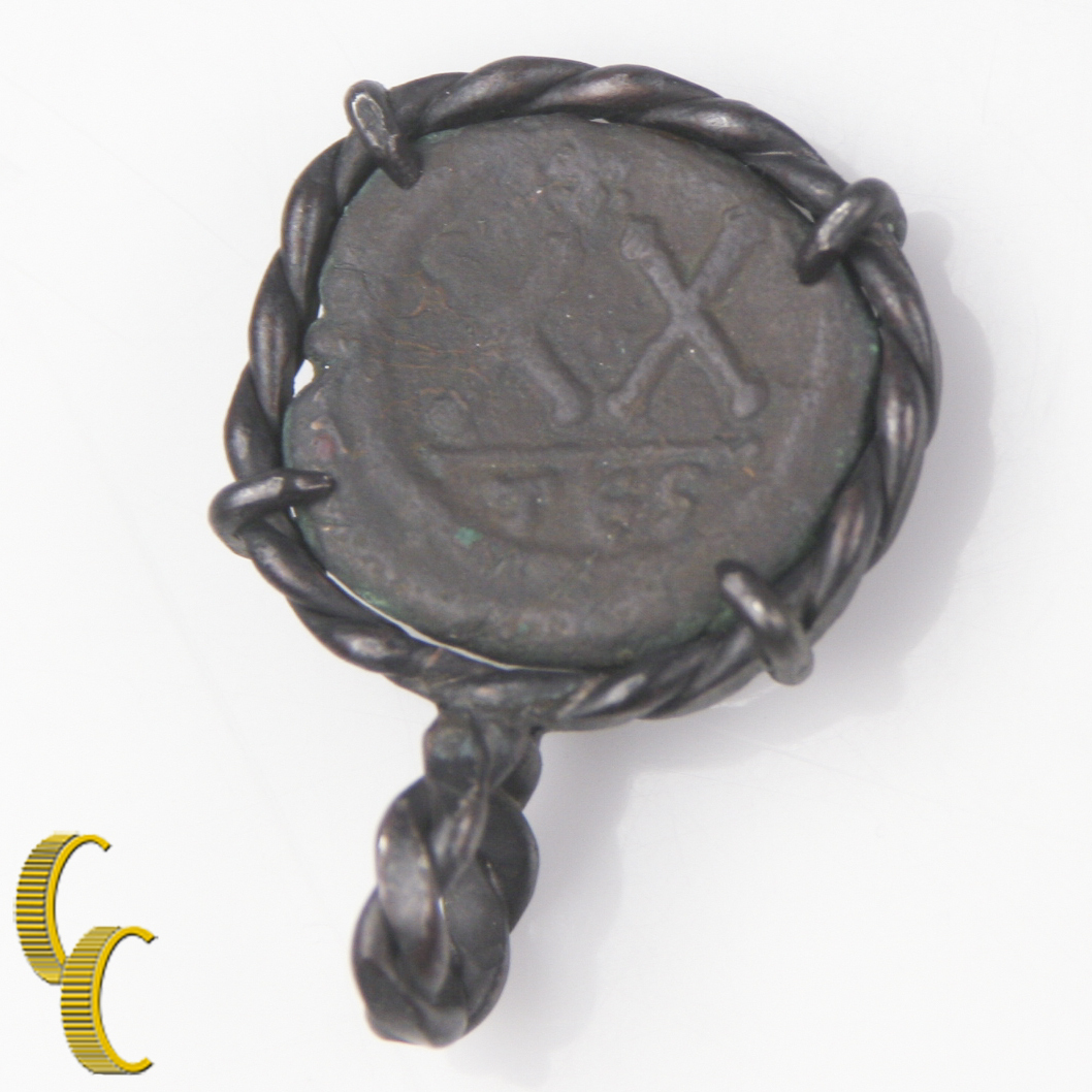 Romain Piece de Monnaie En Argent Antique Lunette Pendentif, 4.9 Gr / 1.9CM