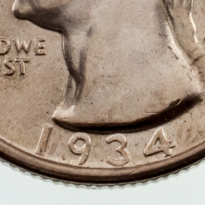 1934 25c Quartier de Washington en etat Gem Bu, formidable appel oculaire