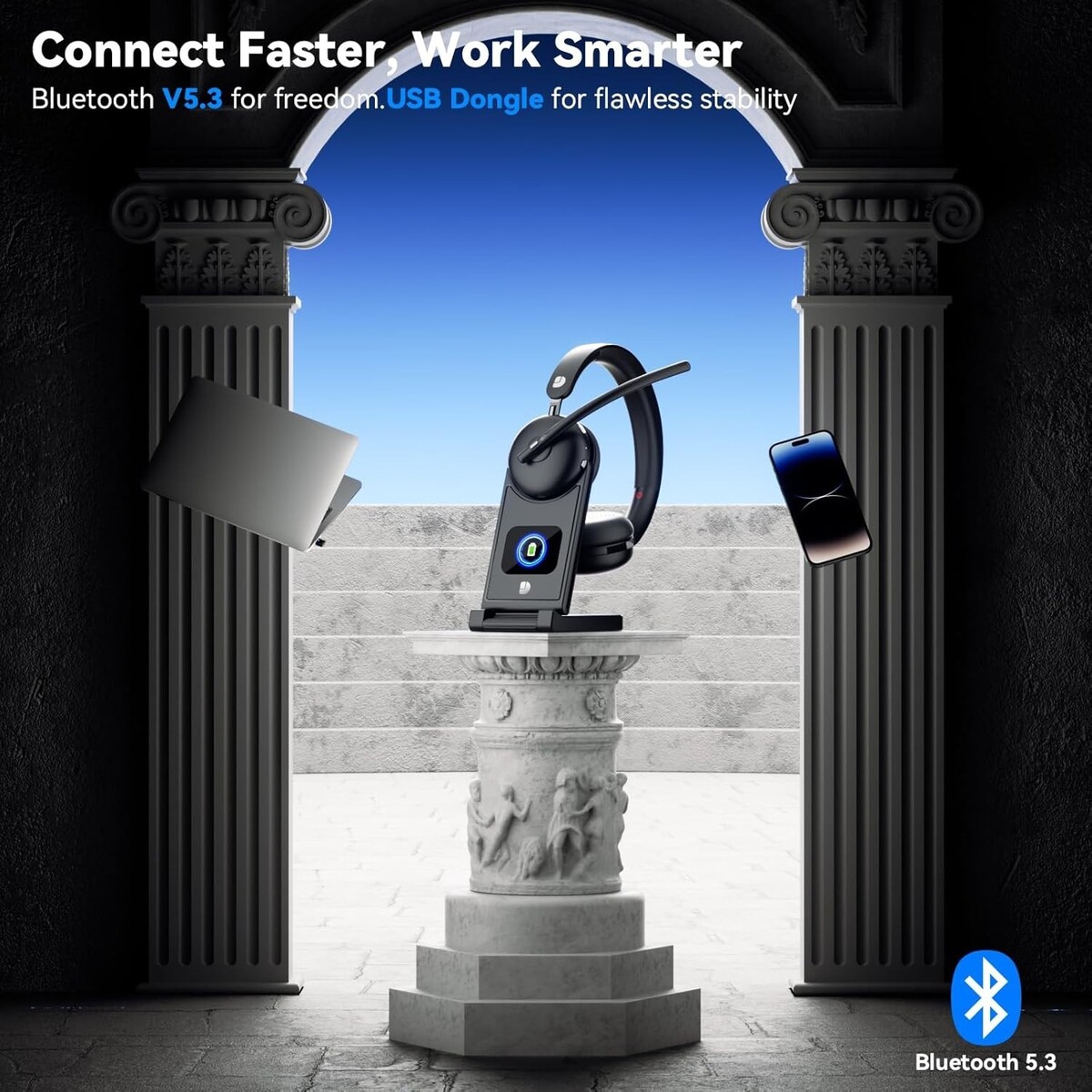 Dytole Wireless Headset with Mic for Work-Bluetooth 5.3 Headset with Microphone
