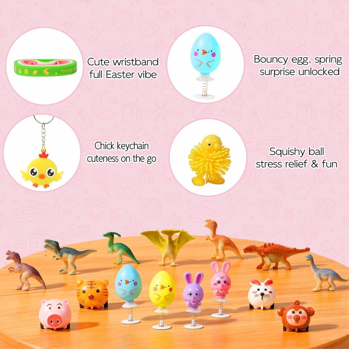 Unique Easter-themed designs: Compared to our competitors, our easter basket stuffers set not only includes classic Easter elements but also incorporates some innovative designs such as jumping toys, rainbow spring toys, etc., bringing more surprises and joy to children.