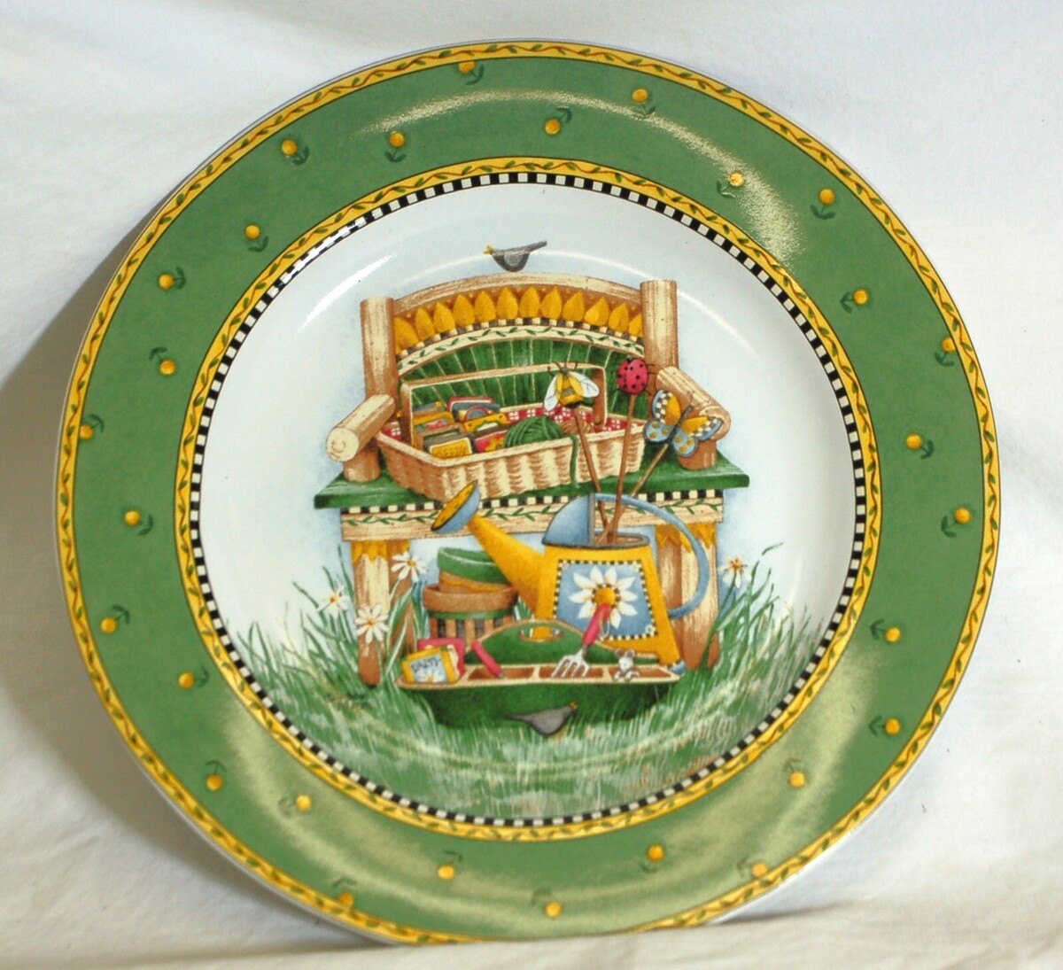 Garden Vignette Sakura Salad Plate Multi Motif Gardening Scenes Bench