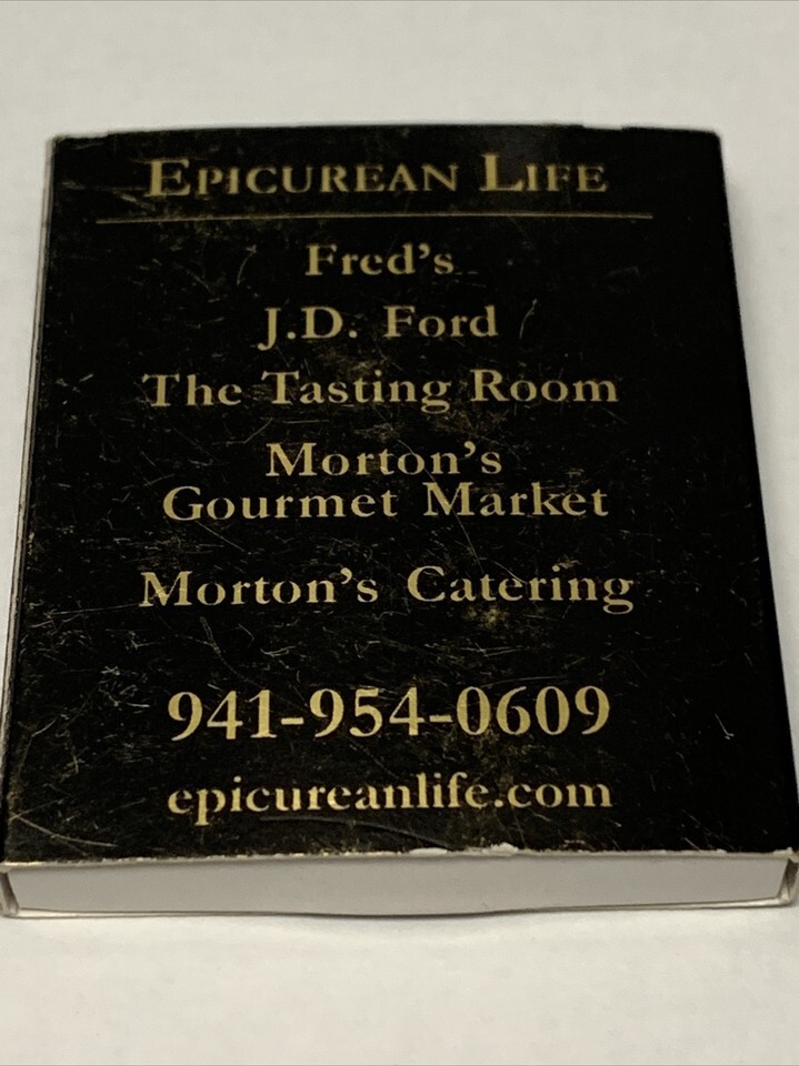 Vintage Matchbox Epicurean Life Fred’s- J.D.Ford -The Tasting Room -Sarasota gmg