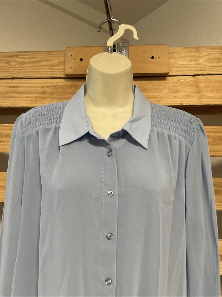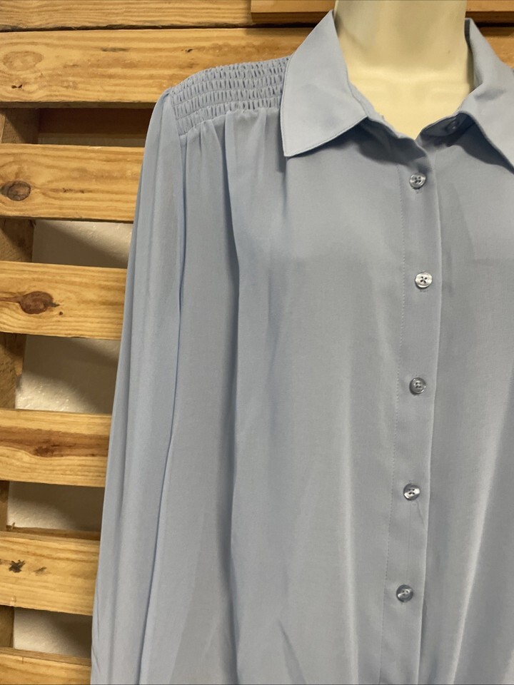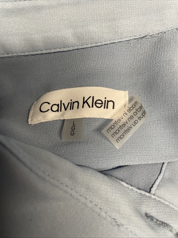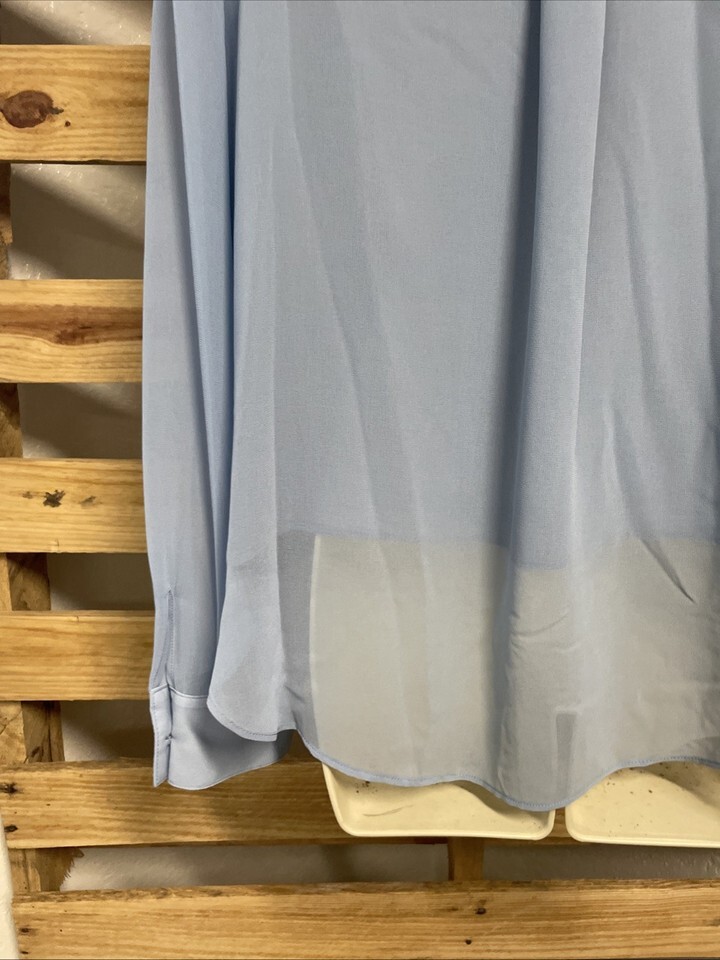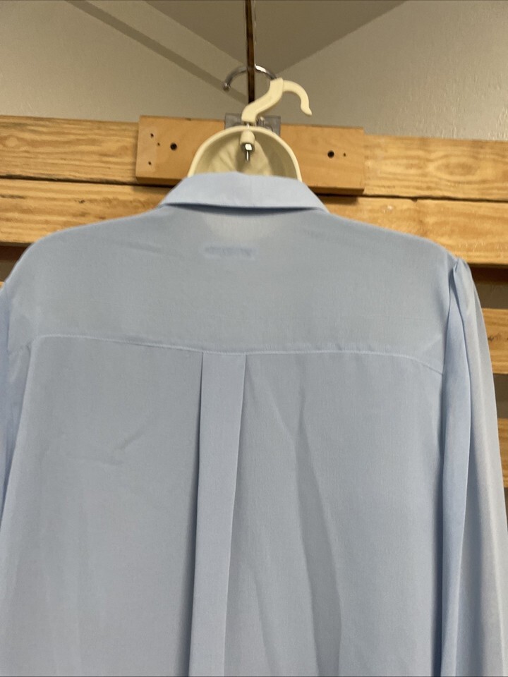 Calvin Klein Light Blue Button Down Sheer Sleeve Tie Up Blouse Woman's L KG