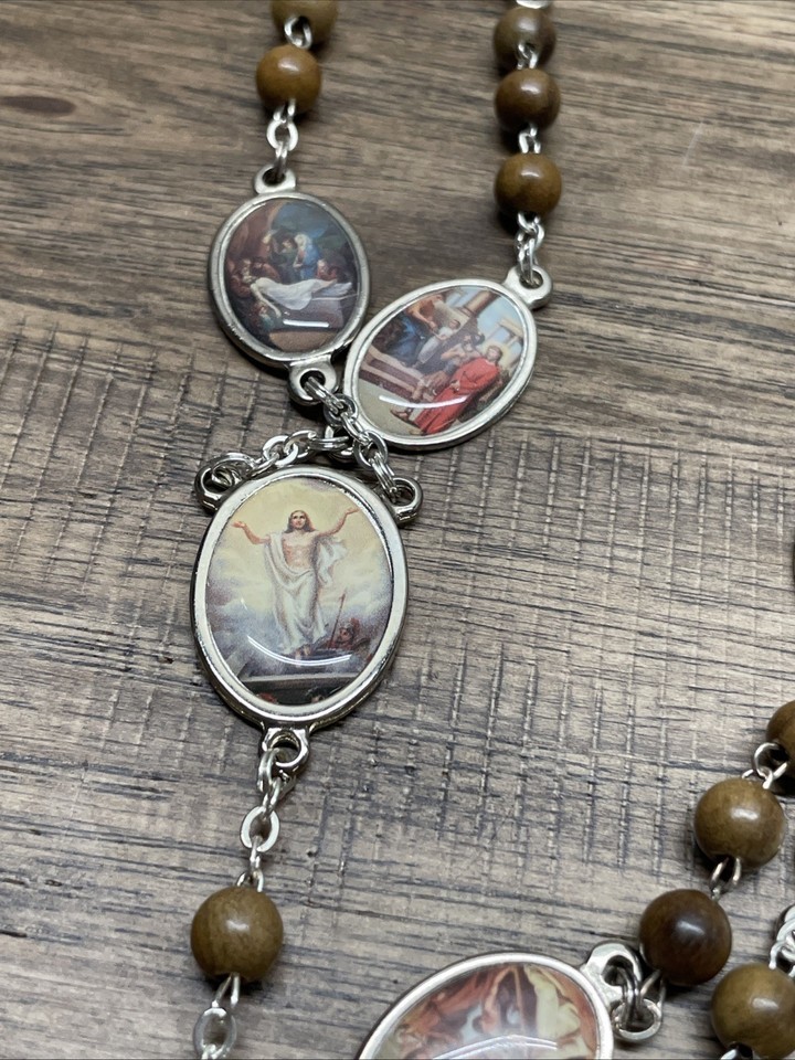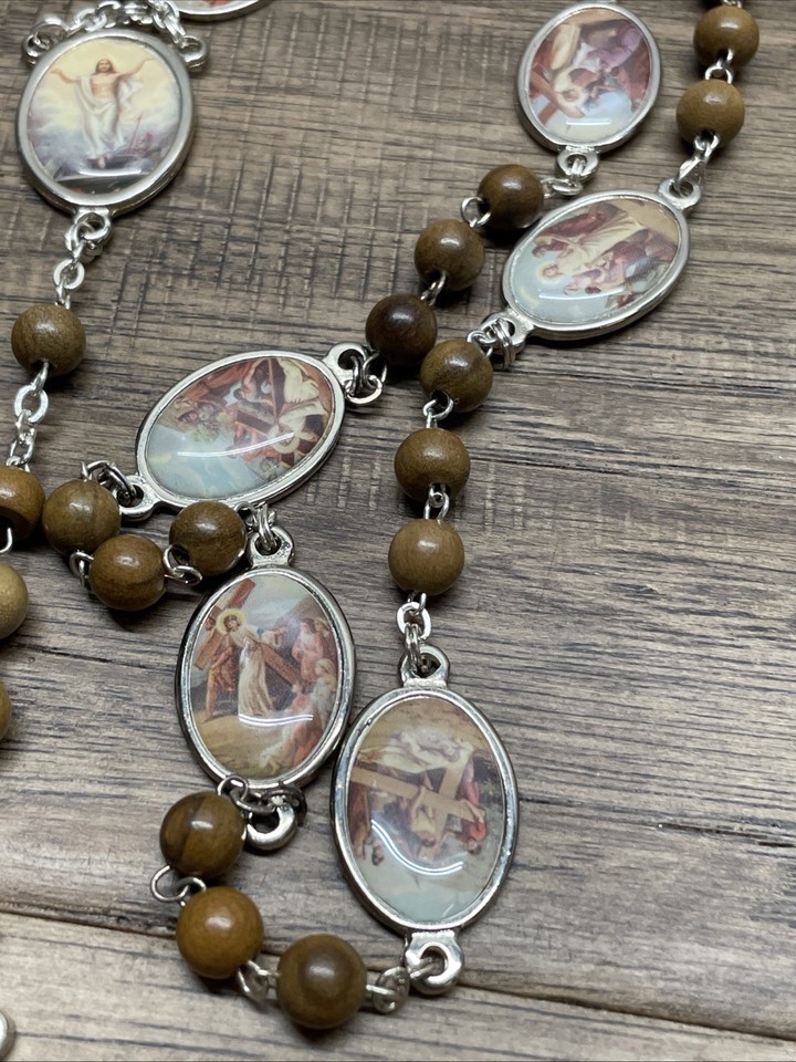 Vintage a Tertium Millenium Wooden Beaded Rosary Christianity Catholic KG