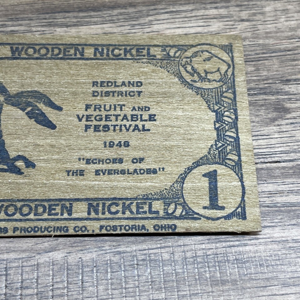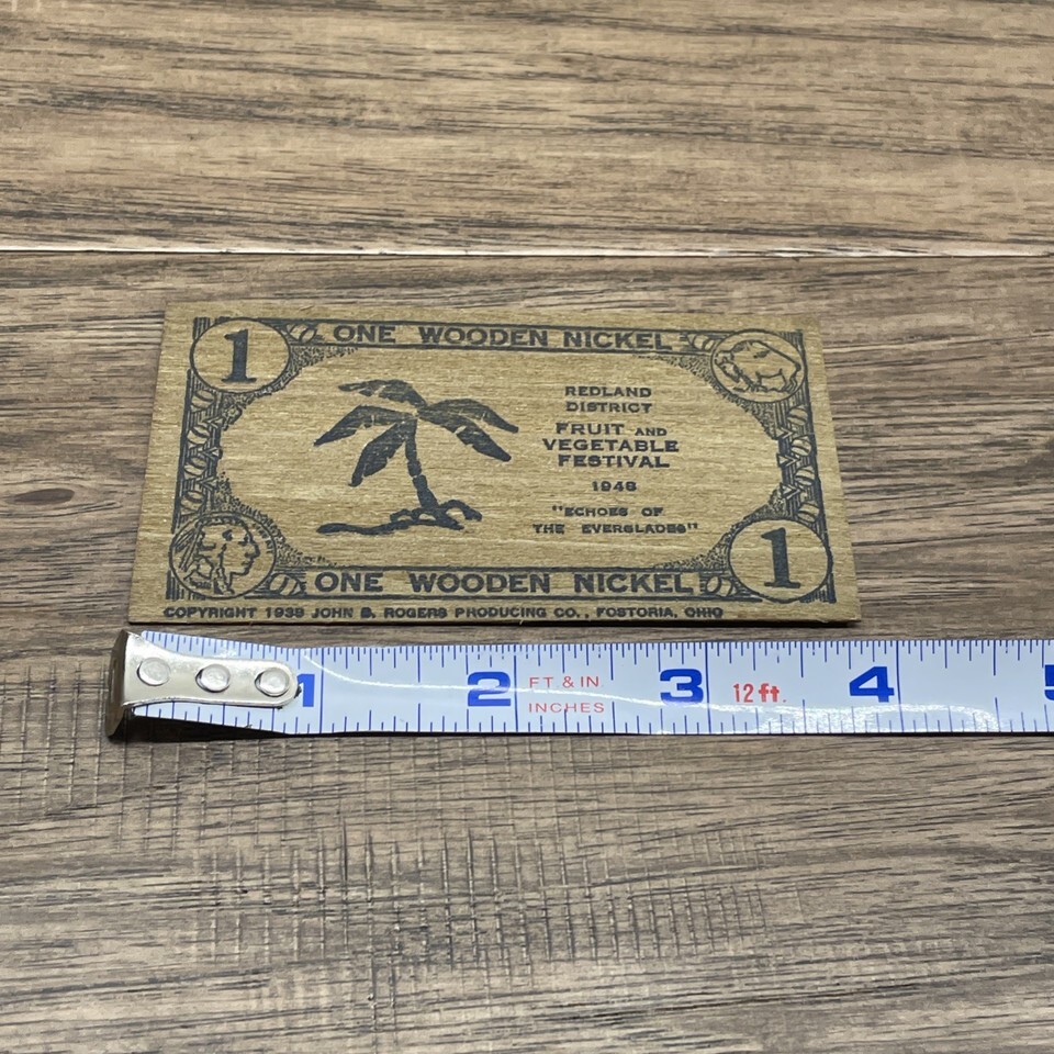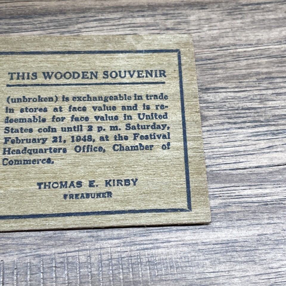 Vintage 1948 Redland District One Wooden Nickel Souvenir Card Travel KG JD