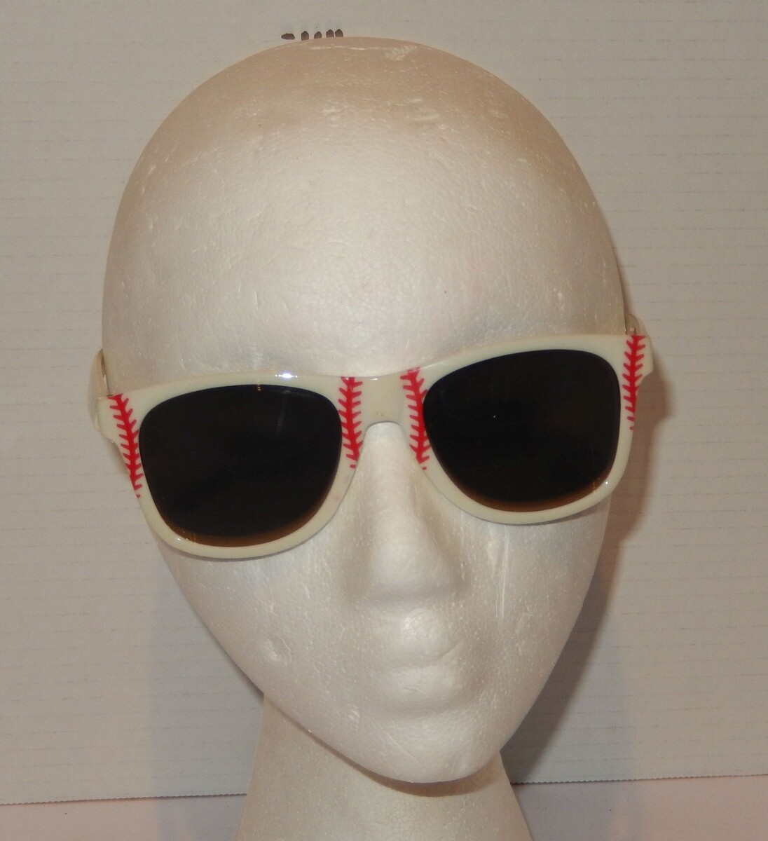 Up for sale is an Halftime Baseball Theme Sunglasses White Red Stitch Design Sport Fan Retro Style.