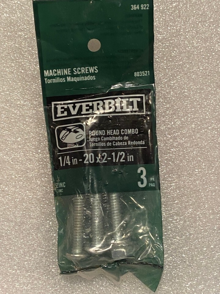 Everbilt Machine Screws 3 PK 1/4" -20 X 2-1/2" Round Head Combo *NEW* fff1