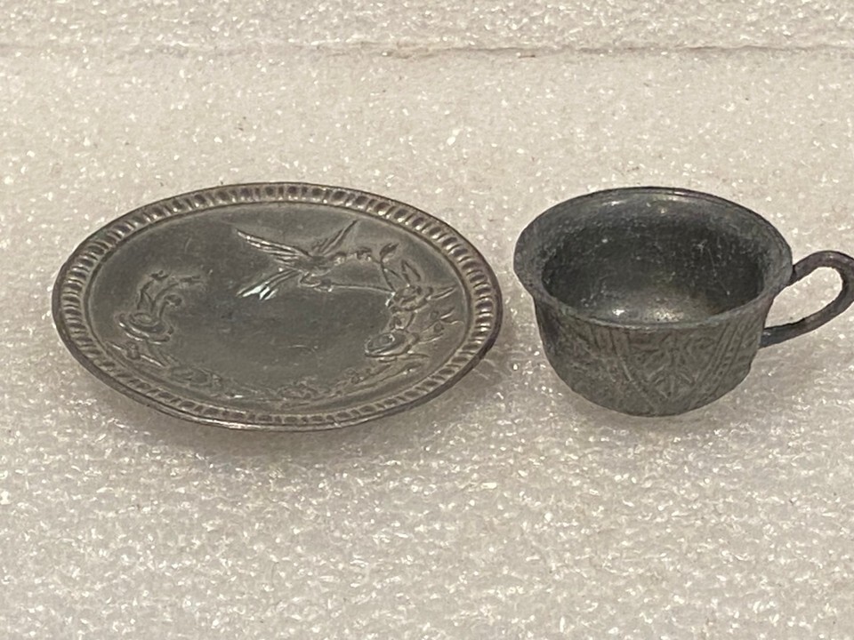 1 Small 1.5" Copper Dollhouse Size Cup & Saucer *Pre-Owned/Unbranded* OR3