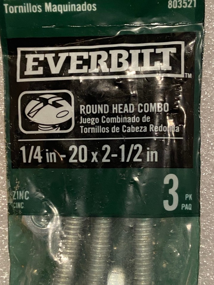 Everbilt Machine Screws 3 PK 1/4" -20 X 2" Round Head Combo *NEW* fff1