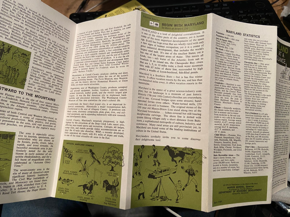 1970's Maryland At a Glance Folded Pamphlet and similar items