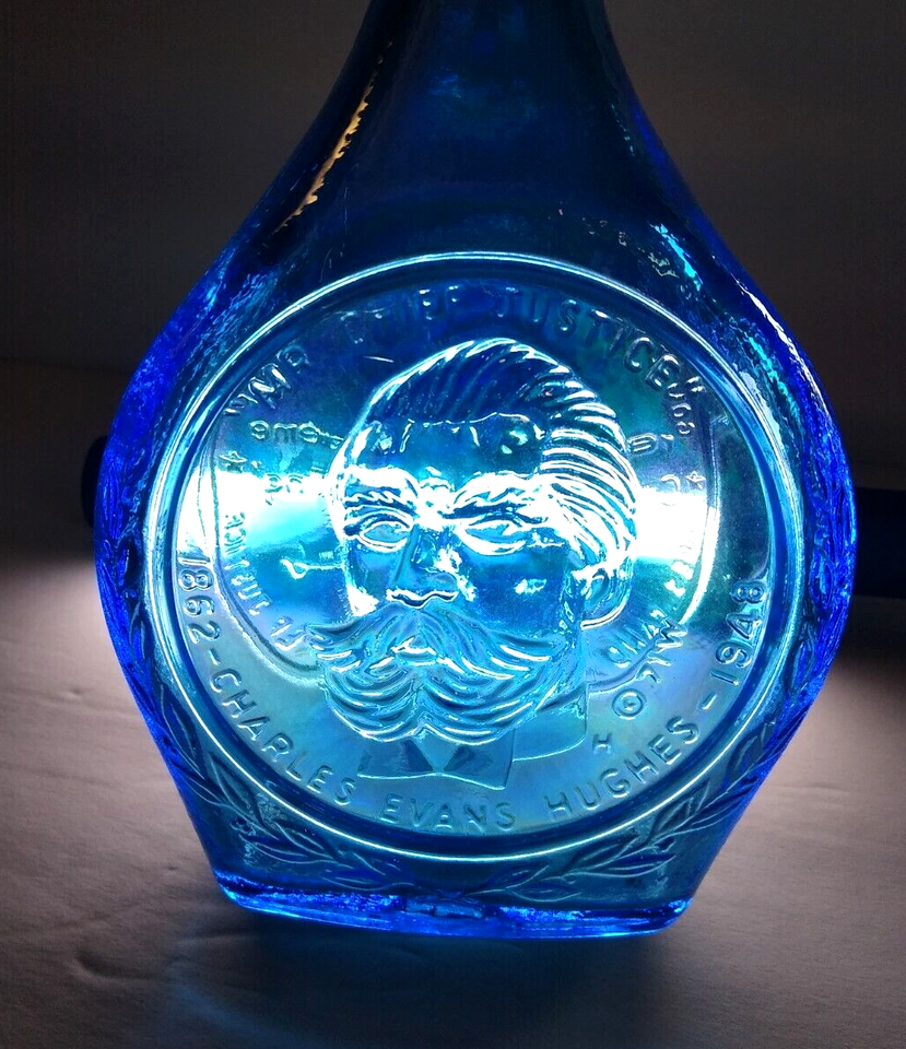 Wheaton Charles Evans Hughes Blue Carnival Glass Bottle Retro 1971 Vintage