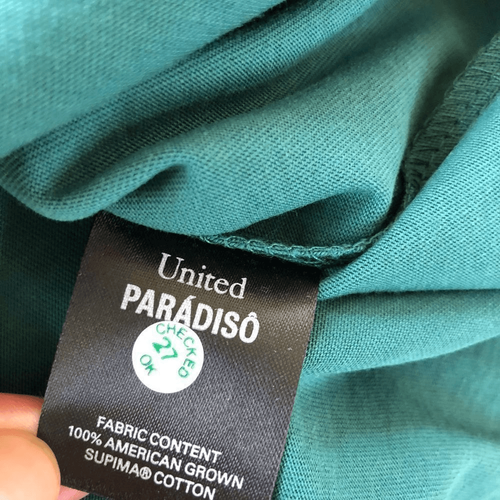United Paradiso New York new without tags teal logo short sleeve TShirt made of 100% American grown supima Cotton. Measurements are approximate and taken while laying flat: 28 inches from shoulder to hem and 20 inches from armpit to armpit