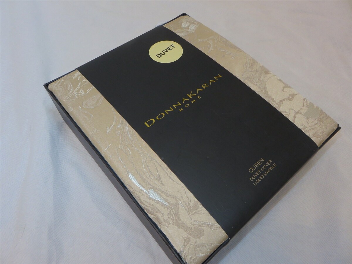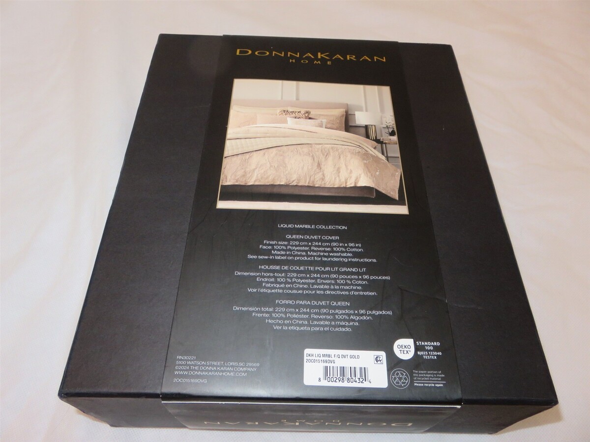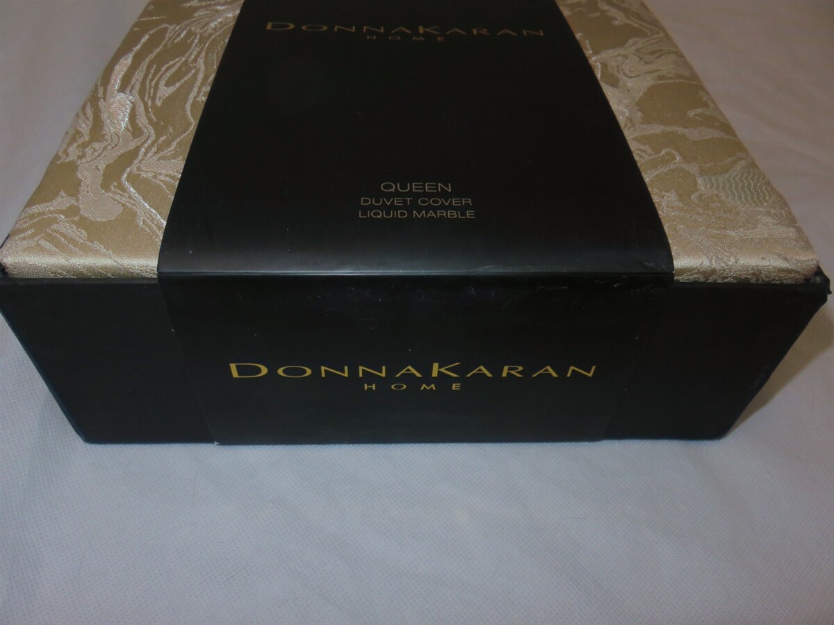 Donna Karan Liquid Marble 3P Queen Duvet Cover Shams Set Gold $820