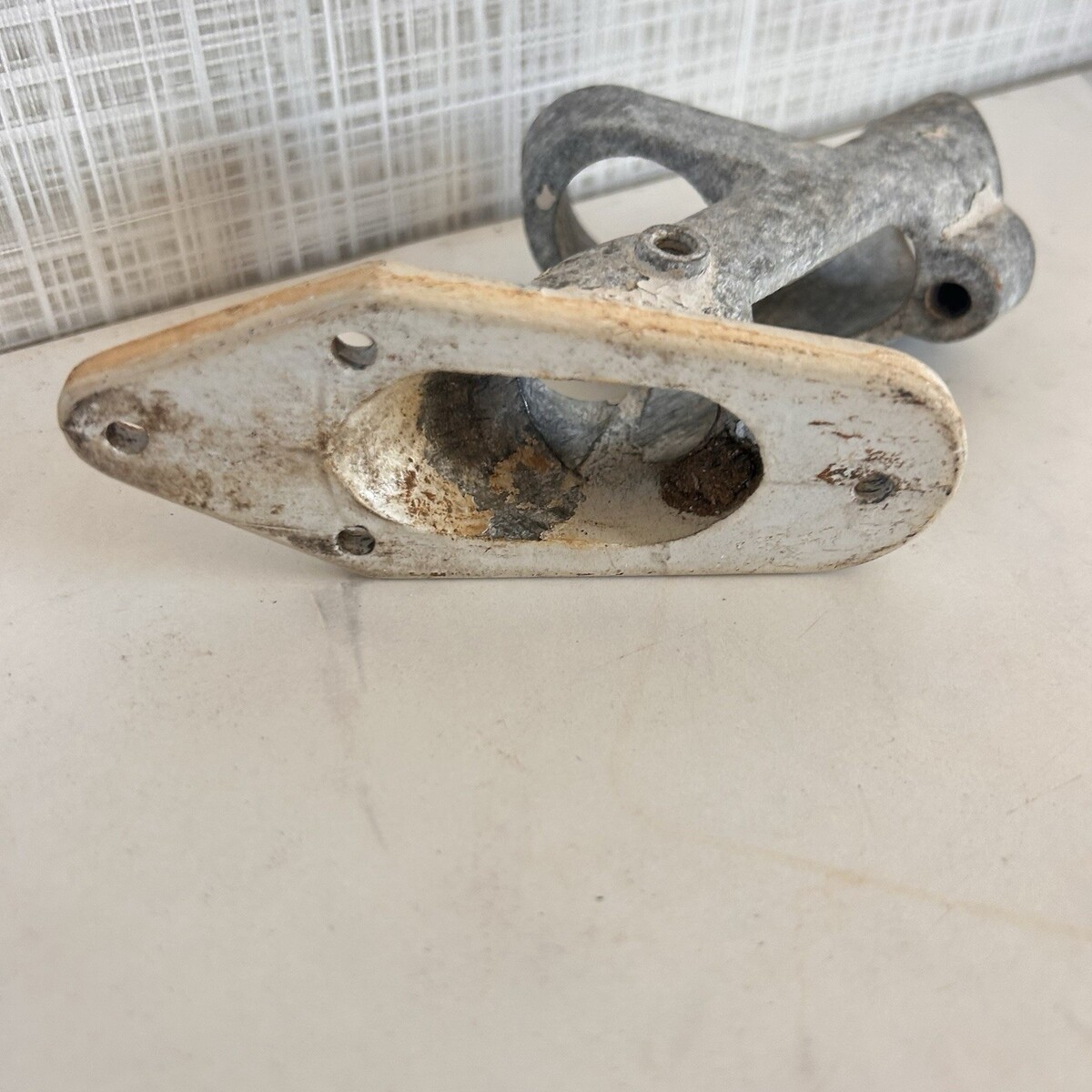 Vintage Flag Holder Bracket Cast Aluminum Rustic Country Farm Look Sturdy. Unbranded but does have a patent number. Pre-owned condition. Rustic but useable.