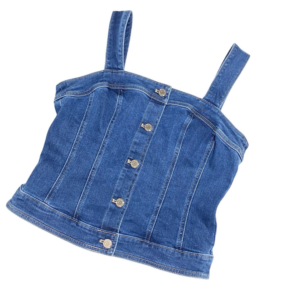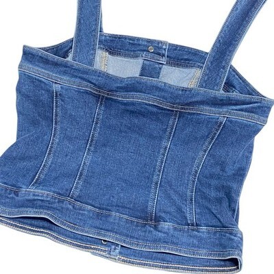 White House Black Market M Women's Blue Sleeveless Denim Bodice Crop Top STRETCH