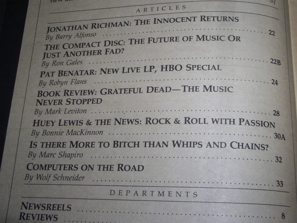Huey Lewis BAM Magazine Vintage 1983 Jonathan Richman Pat Benatar Bitch Betsy