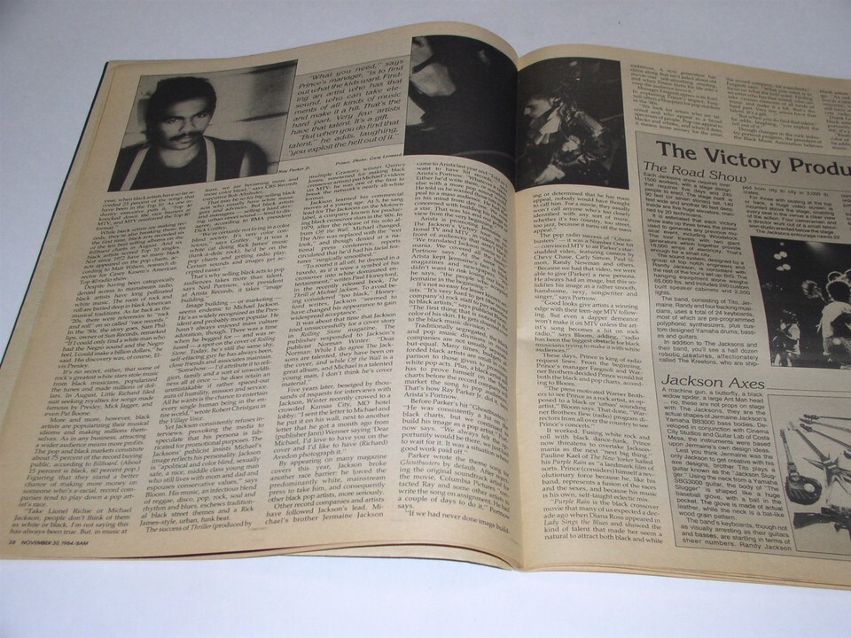 This is the November 30, 1984 issue of BAM Magazine. Cover Story on Michael Jackson. Inside: Crosby Stills Nash, Jermaine Jackson, Cathay De Grande club, The Marketing Of Black Pop, Del Fuegos, Tom Robinson, Mike Jacobs. A terrific item for the fan or collector.