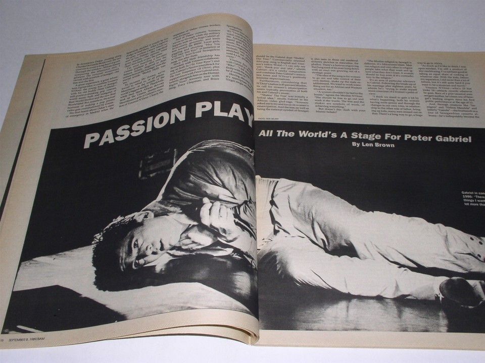 This is the September 8, 1989 issue of BAM magazine. Cover story on Peter Gabriel. A terrific item for the fan or collector.
