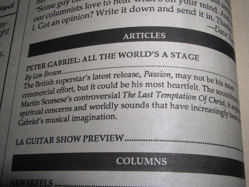 Peter Gabriel BAM Magazine Vintage 1989 Genesis The Last Temptation Of Christ