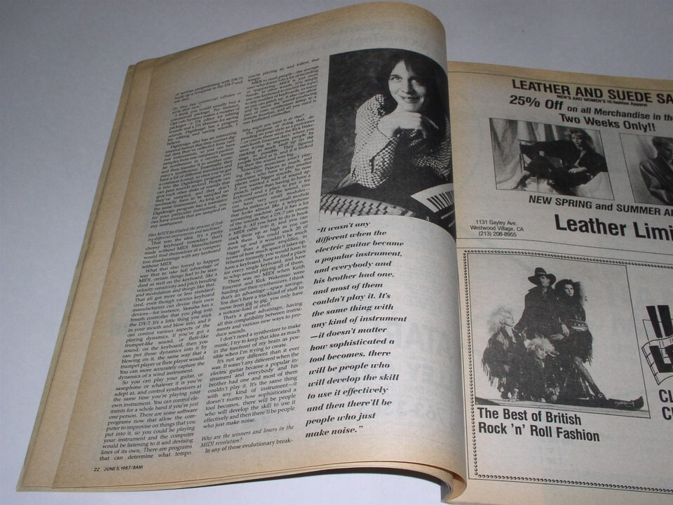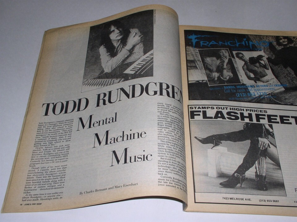 This is the June 5, 1987 issue of BAM magazine. Cover story on Todd Rundgren. Inside: Young Fresh Fellows, Wire, Jim Marshall (amplifiers), Amiga computer. A terrific item for the fan or collector.