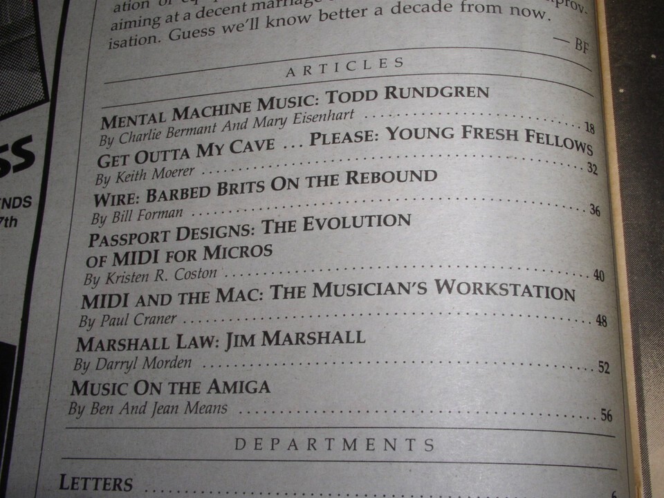 Todd Rundgren BAM Magazine Vintage 1987 Young Fresh Fellows Wire Marshall Amps**