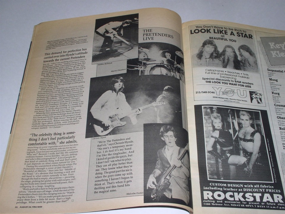 The Pretenders BAM Magazine Vintage 1984 Chrissie Hynde Romeo Void Andy Summers