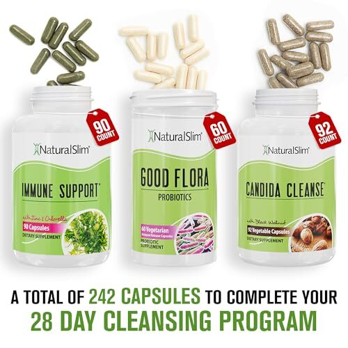 Package Dimensions:9.57 x 5.47 x 4.84 inches; 5.68 ounces Item model number:CandiKit2 Date First Available:March 23, 2023 Manufacturer:RelaxlSlim ASIN:B08YP4X48V Best Sellers Rank:#639 in Detox Cleanse Weight Loss Products Customer Reviews:4.7 4.7 out of 5 stars Naturalslim CANDISEPTIC Kit is a 28-day wellness program designed to support digestive balance, daily metabolism support, and overall wellness. This thoughtfully formulated kit includes three complementary supplements that work together as part of a balanced lifestyle: ?? CANDISEPTIC FORMULA ? Designed to support a balanced internal environment and digestive comfort as part of everyday wellness routines. ?? IMMUNE SUPPORT ? A blend of vitamins, minerals, and botanical ingredients formulated to support the body?s natural defense processes and antioxidant activity. ?? GOOD FLORA ? A probiotic supplement formulated to help maintain a healthy gut environment and support normal digestive function. When used consistently as part of a healthy routine, the CANDISEPTIC Kit supports daily digestive comfort, energy levels, and overall well-being. Its coordinated system is designed to complement active lifestyles and wellness-focused habits. The kit includes a clear, easy-to-follow 28-day regimen and comes in a convenient, travel-friendly box, making it simple to stay consistent wherever you are. A practical option for adults looking to support gut balance and everyday wellness as part of their daily routine. ??????? ???? ????? ???????: A 2-pack of our 28-day nutritional program designed to help maintain overall wellness and internal harmony. Ideal for supporting digestive comfort and balance as part of your daily routine. ??? ???????? ?????-???? ???????: Includes two full sets of Candida Balance, Wellness Support, and Good Flora, three complementary supplements created to work together for a balanced internal environment. ???????? ????????? ????????: Formulated to help maintain digestive comfort and microbiome balance. Includes probiotics that contribute to a well-supported internal ecosystem. ???????? ???????? ??????: Provides a convenient two-month routine to support consistent daily supplementation and long-term digestive and immune wellness goals. ???? ????? ???????: Includes clear instructions and convenient daily servings in a travel-friendly package, making it simple to stay consistent with your wellness habits. ????????? ???: As a dietary supplement, adults take 2 capsules twice daily, or as directed by a healthcare professional.