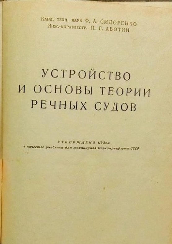 Ustroystvo i osnovy teorii rechnykh sudov. In Russian /Design and Basics of Riv