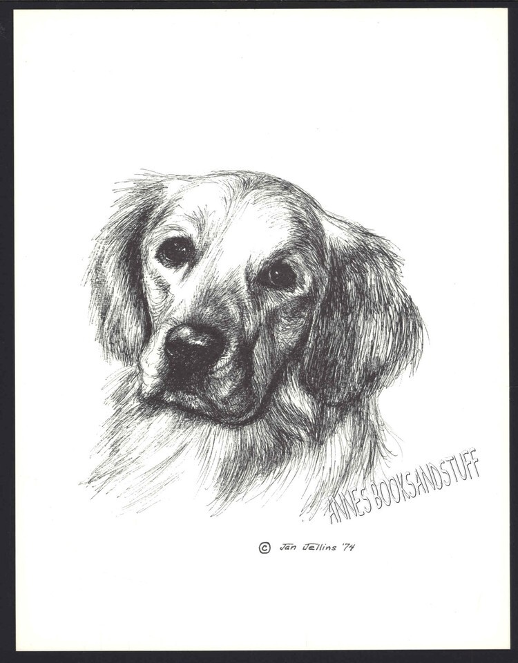 #34 GOLDEN RETRIEVER portrait dog art print * Pen and ink drawing by Jan Jellins