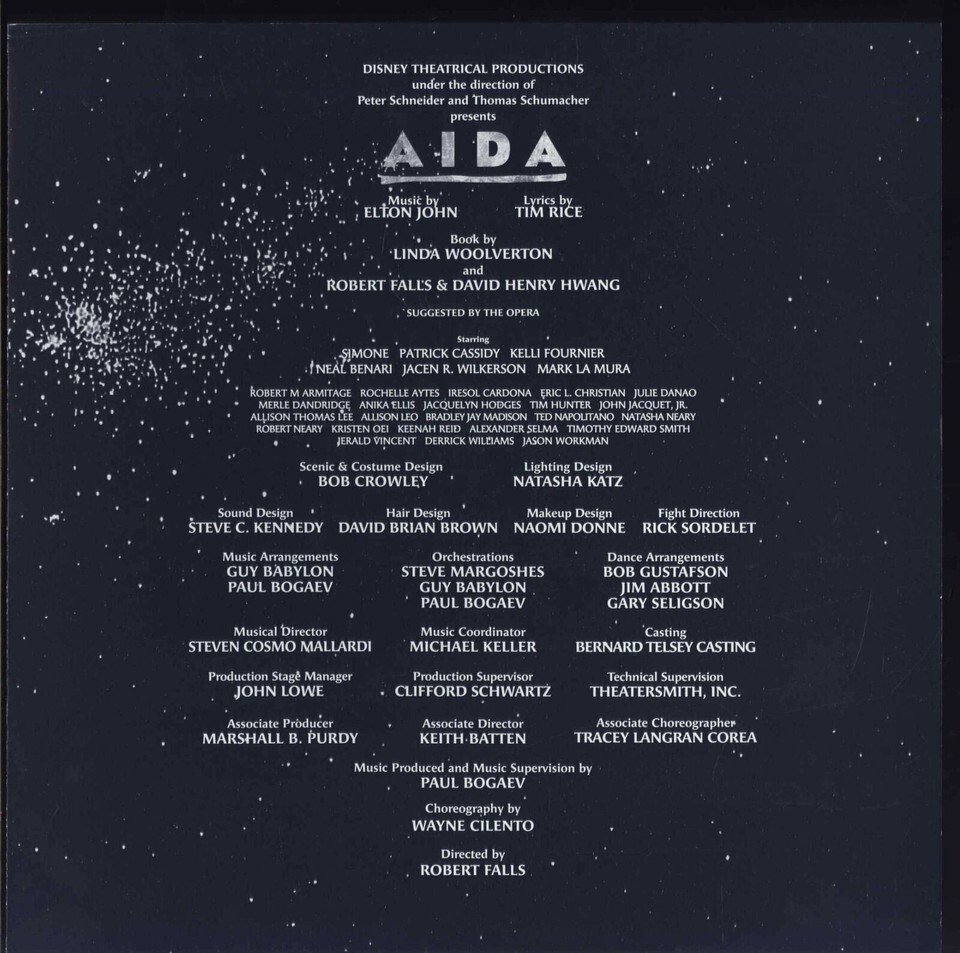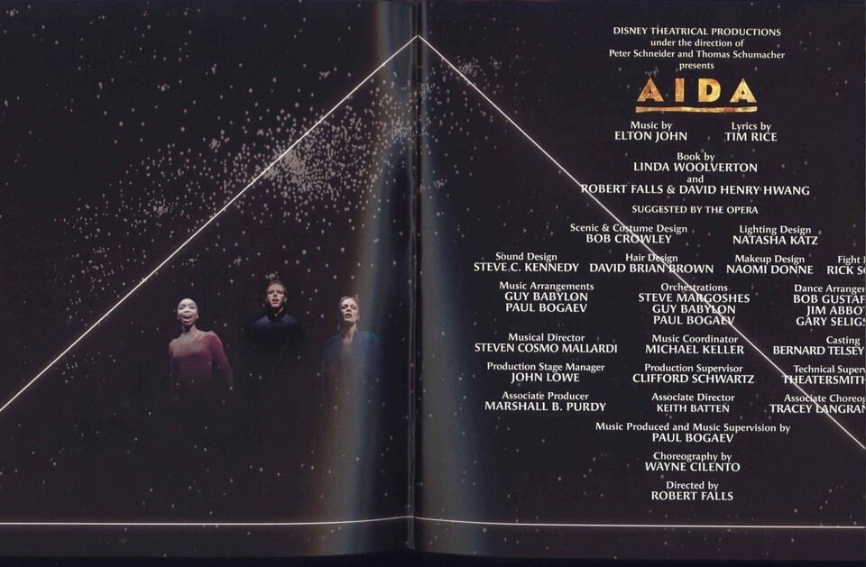 AIDA music by ELTON JOHN Lyrics by TIM RICE * 2000 Souvenir Brochure soft cover