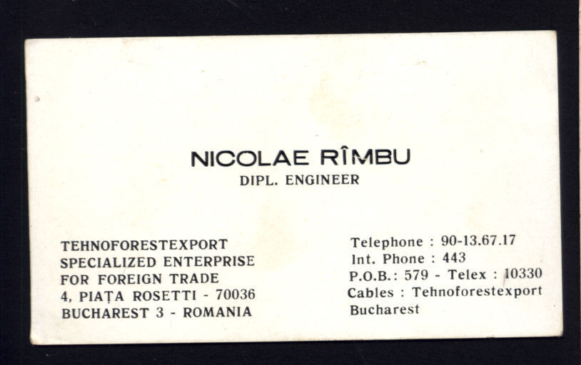 FOUND in ALBUM - Business card Nicolae Rimbu Dipl. Engineer BUCHAREST 3 ROMANIA