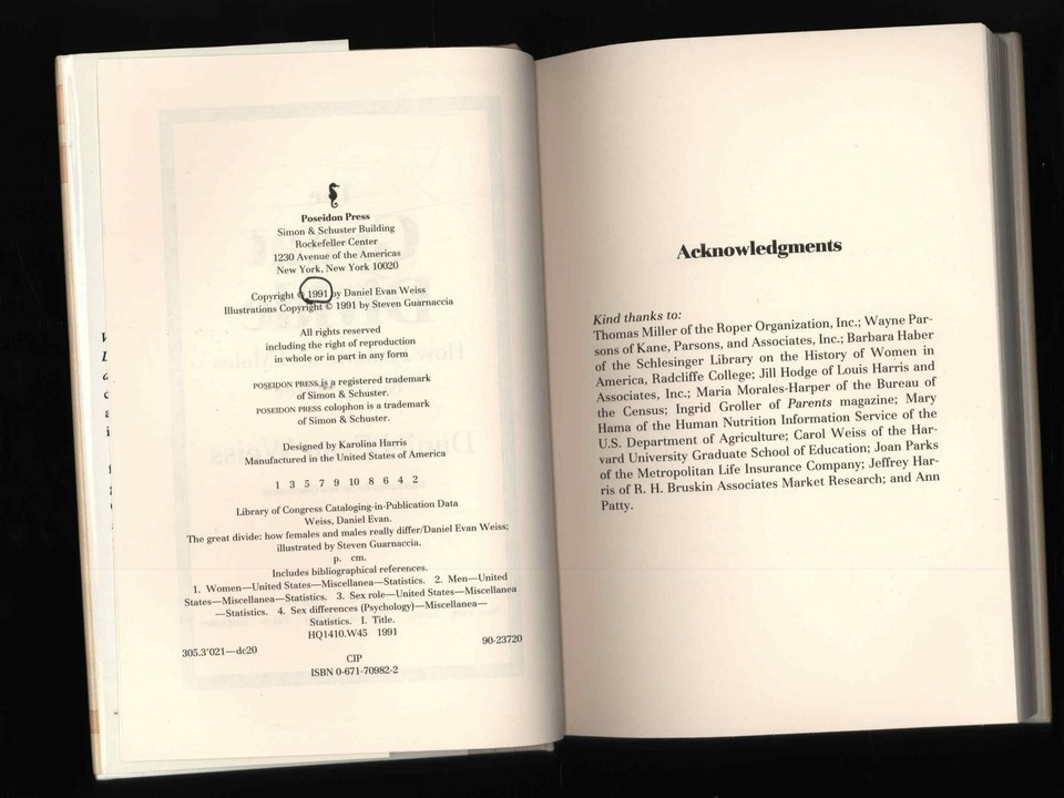THE GREAT DIVIDE : How Females and Males Really Differ by Daniel E. Weiss *HB/DJ