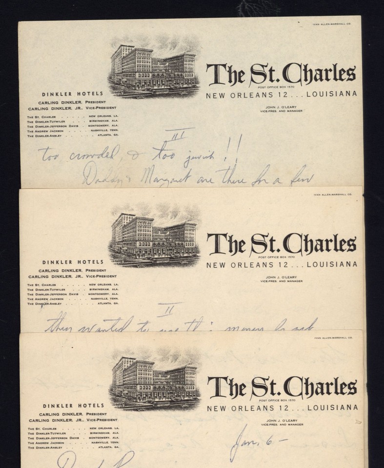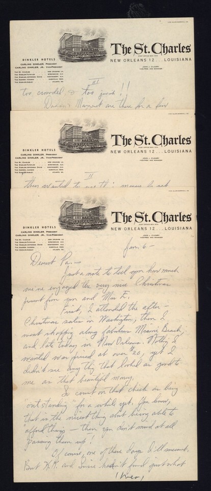 Letter from Unknown Person on the St. Charles Hotel New Orleans LA letterhead
