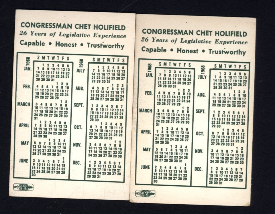 FOUND in BOOK - 1968 Business card/Calendar Congressman CHET HOLIFIELD lot of 2