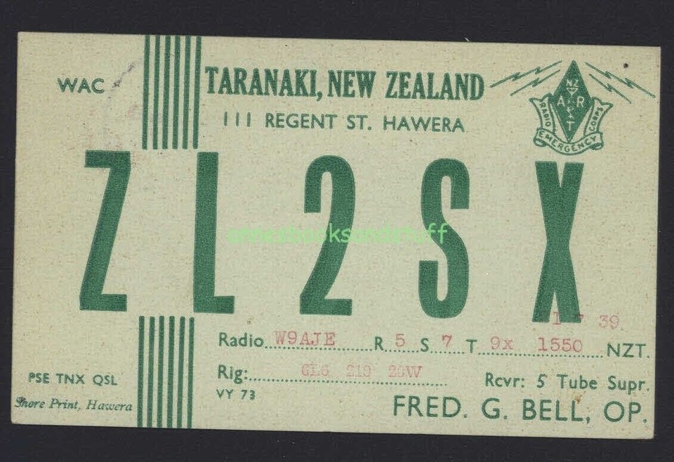 QSL CARD ham radio card * ZL2SX 1939 * New Zealand mailed with stamp Fred G Bell