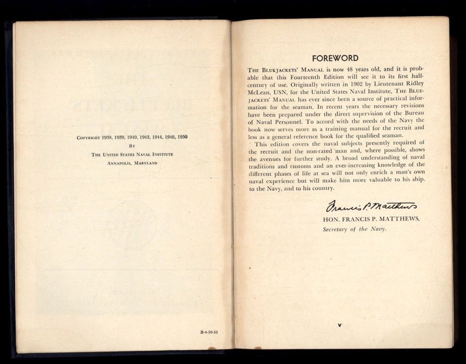 THE BLUEJACKETS' MANUAL US NAVY * 14th edition 1950 NAVAL INSTITUTE Annapolis MD