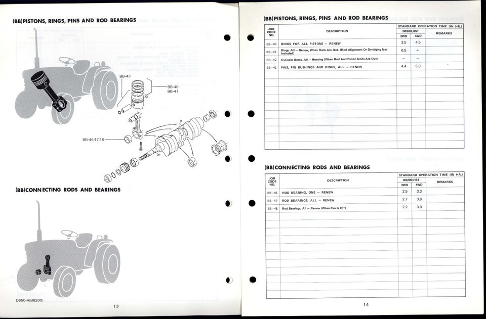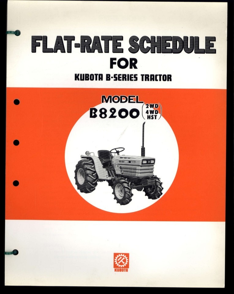 FLAT-RATE SCHEDULE for KUBOTA B-series Tractor B8200 * 2 & 4 Wheel Drive HST