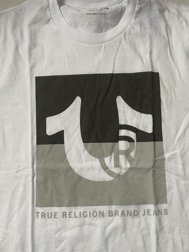True Religion Brand Jeans Two Tone Box Logo Shirt Size L White NWT.