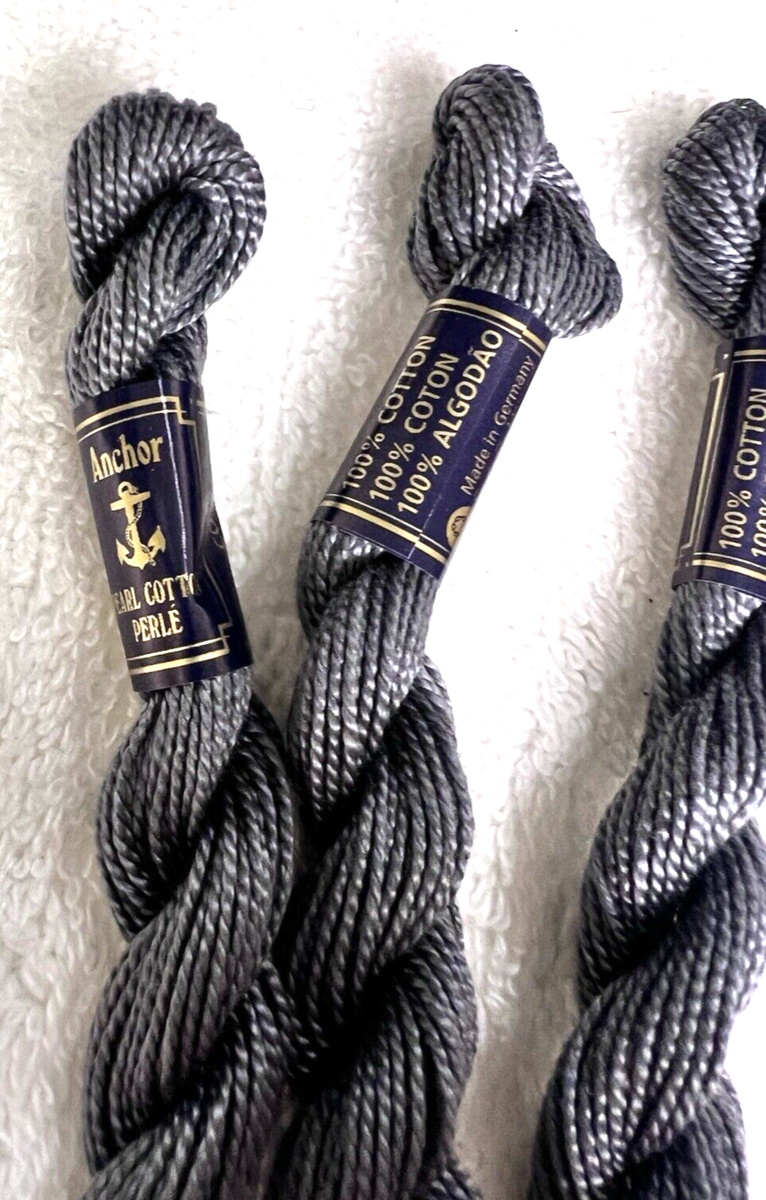 3 MINT Anchor Perle Pearl Cotton #400 Deep Grey Embroidery Floss Vintage Skein