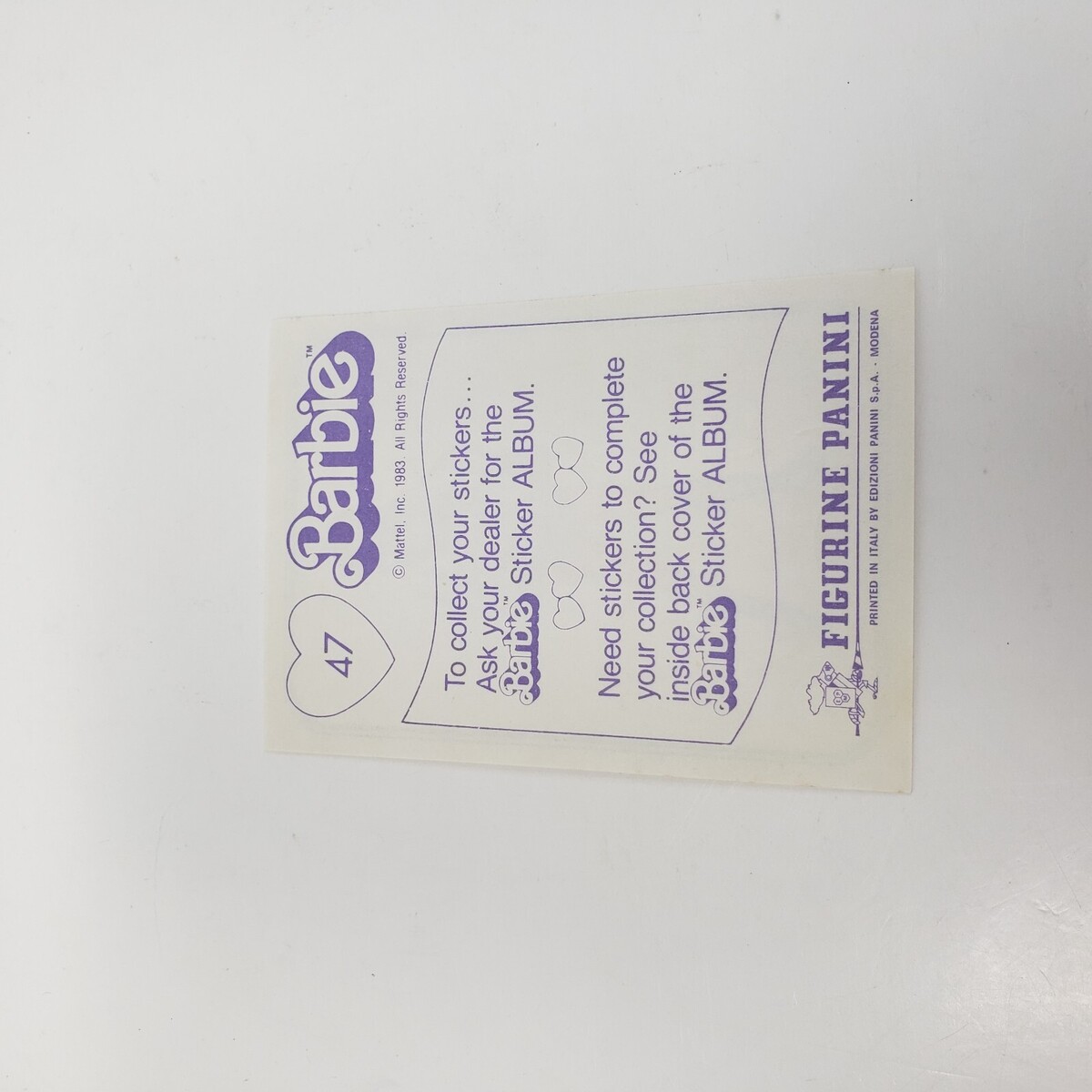 VINTAGE 1983 MATTEL FIGURINE PANINI BARBIE ALBUM STICKER NOS NEW OLD STOCK # 47